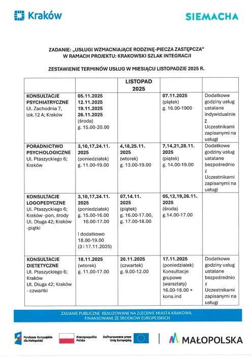 Zadanie realizowane na zlecenie Miasta Krakowa, finansowane ze środków Europejskiego Funduszu Społecznego Plus w ramach programu Fundusze Europejskie dla Małopolski 2021-2027.